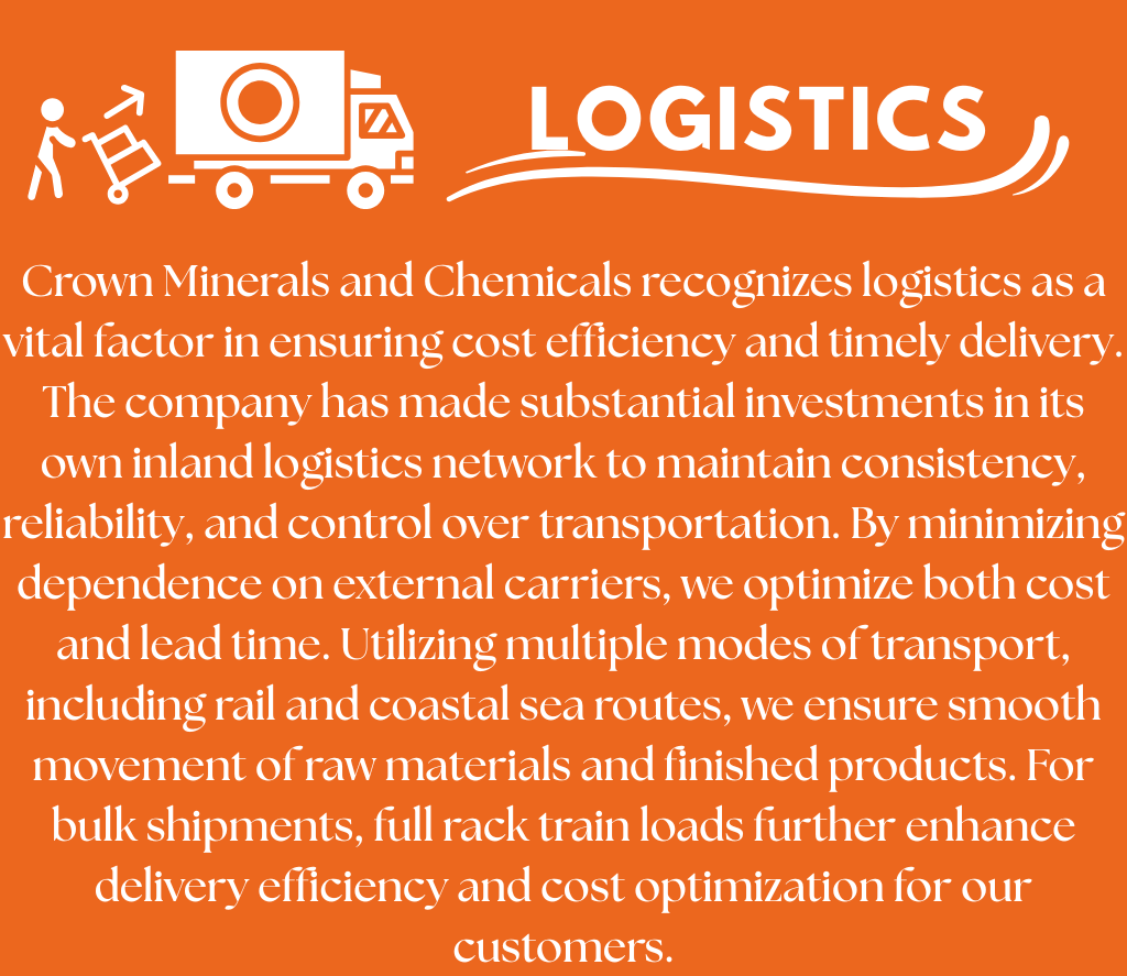 Backed by a robust logistics and distribution network, we guarantee smooth and uninterrupted delivery of our minerals throughout India and global markets, maintaining efficiency from mine to customer.